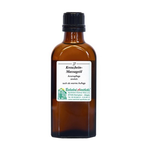 Das Kreuzbein-Massageöl ist eine ätherische Ölmischung, die einmassiert oder als warme Auflage dabei unterstützt, betroffene Körperpartien zu durchwärmen und so entspannend und entkrampfend regulieren kann.