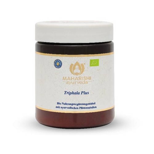 Triphala Plus Bio von Maharishi Ayurveda vereint die Eigenschaften von Haritaki, Amalaki und Bibhitaki in einer Nahrungsergänzung. Triphala ist nährend und unterstützt die Bildung von Ojas, nach Ayurveda die allerfeinste Körpermaterie. Ojas fördert Langlebigkeit, Körperkraft, eine anziehende Ausstrahlung und Glück. Triphala Plus ist ein herausragendes Rasayana, das im ganzen Körper Pitta harmonisiert.